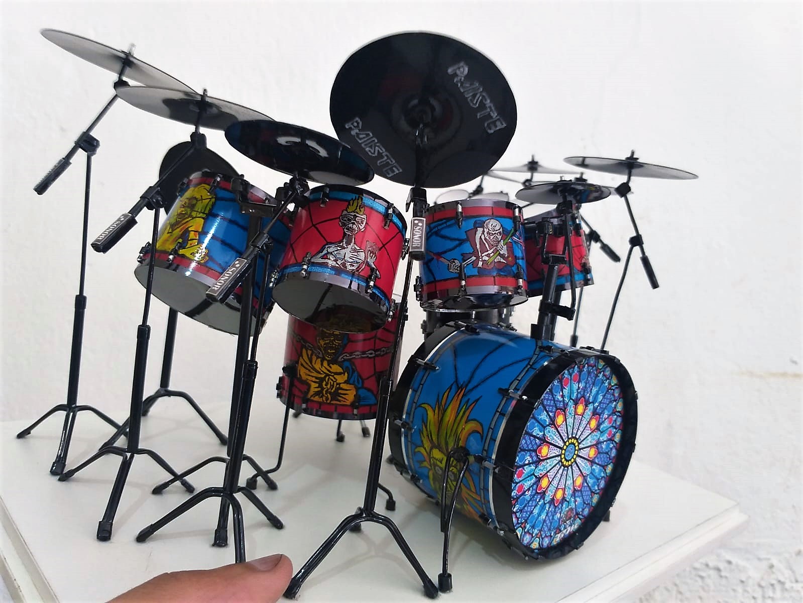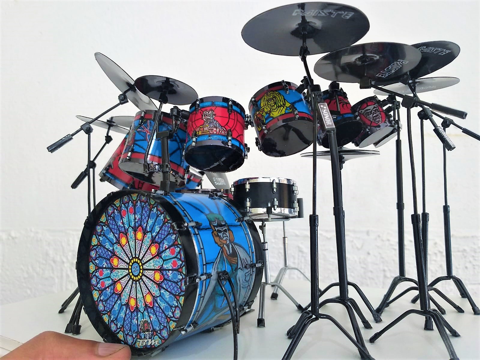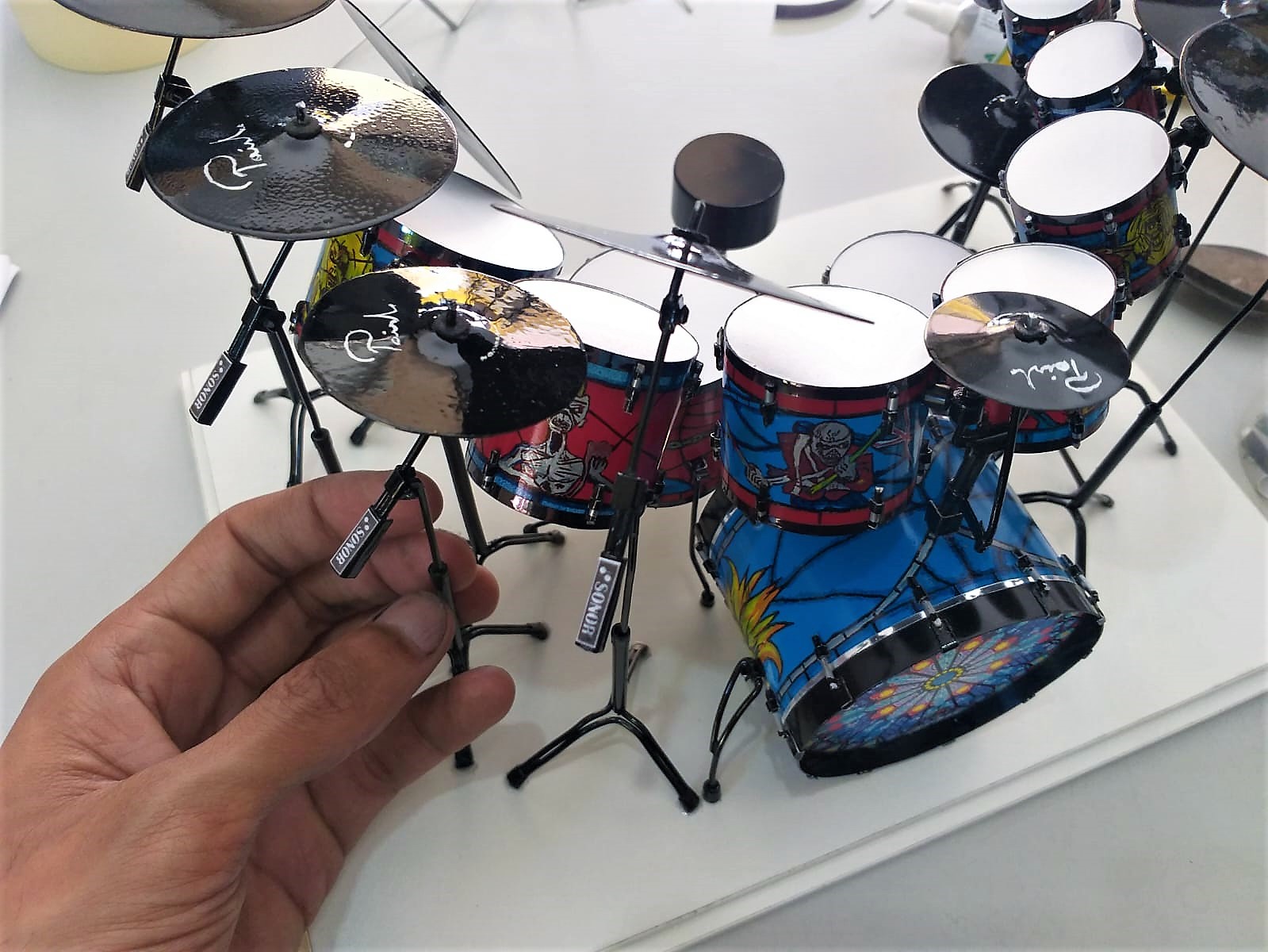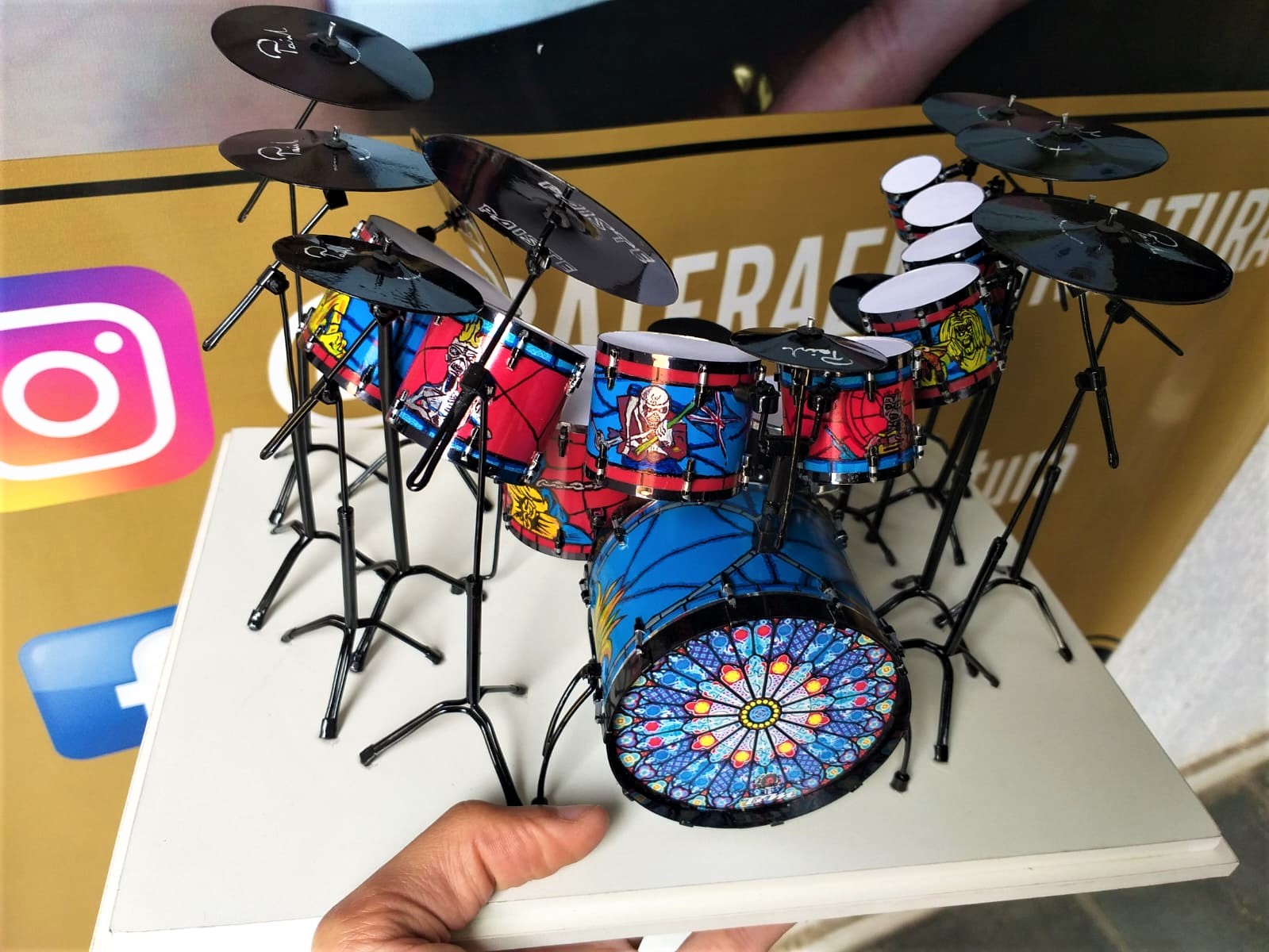 A Miniatura de Bateria Sonor Iron Maiden, é uma peça exclusiva, desenvolvida artesanalmente com alto padrão de acabamento e riqueza de detalhes com desenhos feitos a mão. Produzida manualmente, cada unidade é construída com precisão e cuidado, garantindo autenticidade e personalidade única.